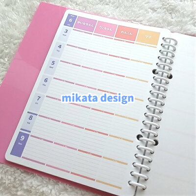 2022年4月始まり 他 2022 A5 B5 A4 スケジュール帳 ママ手帳 家族 手帳 育児ダイアリー 日曜始まり 月曜始まり ◆4人用 月別ウィークリーNタイプ 12か月分 パステルカラーみんなのスケジュール【ルーズリーフ A5 B5 A4 / 6穴システム手帳リフィル A5】