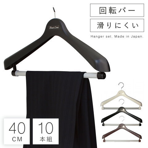 ハンガー すべらない おしゃれ セット 10本組 まとめ買い スーツ スーツ用 スーツハンガー ジャケット コート アウター ズボン ズボン用 スラックス パンツ スラックスハンガー メンズ 男性 レディース 女性 ボトムス プラスチック 軽い 軽量 ブラック 黒 ブラウン 茶 ...