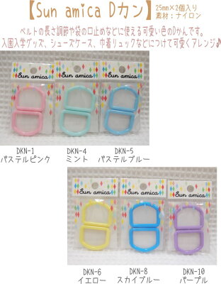 【Sun amica Dカン】 ベルトの長さ調節や袋の口止めなどに使える可愛い色のDかんです。