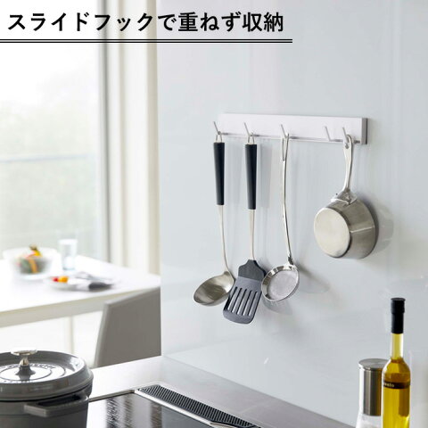 フックの位置が変えられることでキッチンツール同士が重ならず、無駄なスペースも生まれないので効率のいい収納ができます。
