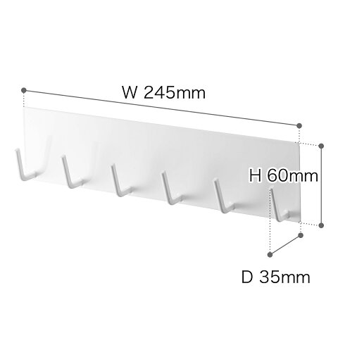 品番 5134 / 5135 サイズ 約 幅 245mm×奥行き 35mm×高さ 60mm 重さ 約 220g 素材 スチール( 粉体塗装 )、マグネット 耐荷重 約 1.5kg フック1つあたり:約 250g ※スチールの厚みや表面の塗装、壁面の強度や状態によって異なります。
